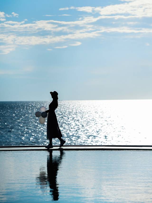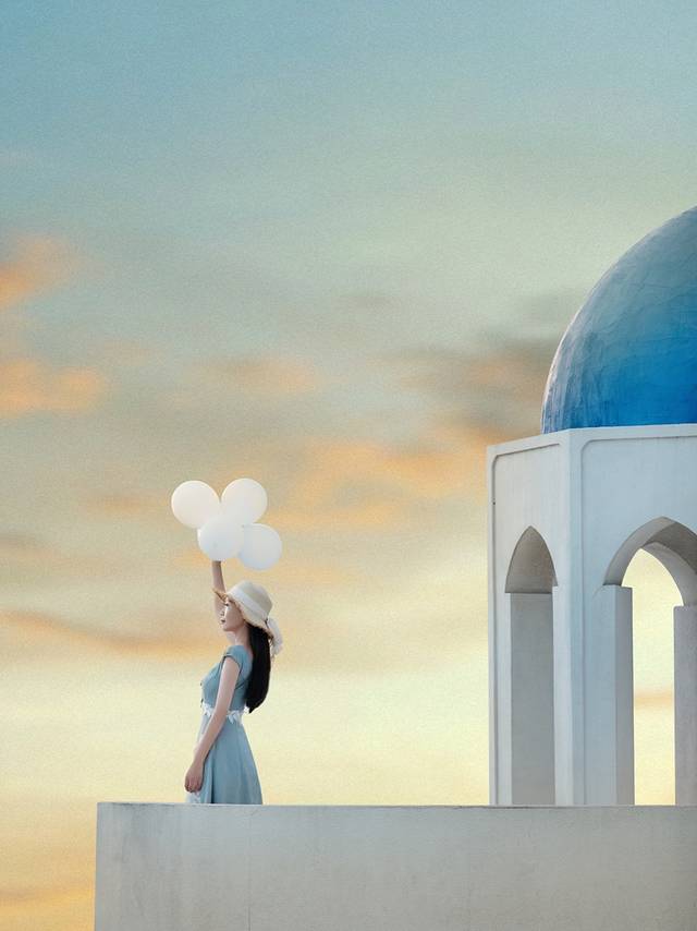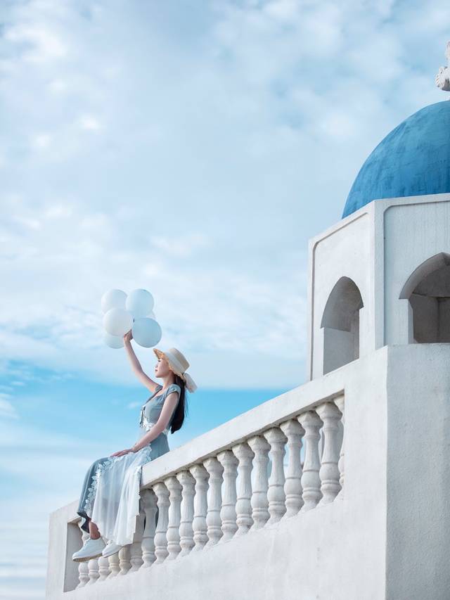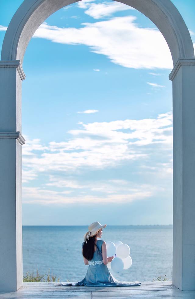 最好的拍摄时间是下午三四点,日落和晚霞绝美,自己也可以带些气球当道具。眼前的这片海,是我旧时记忆中向往的那片海,没有任何的瑕疵,那么宽广,那么浩瀚。