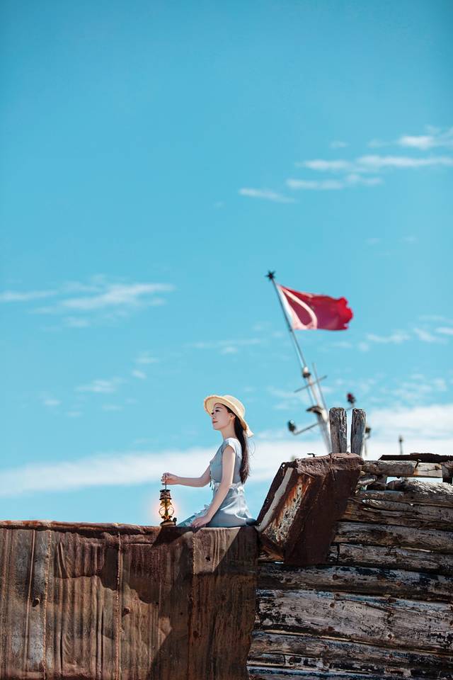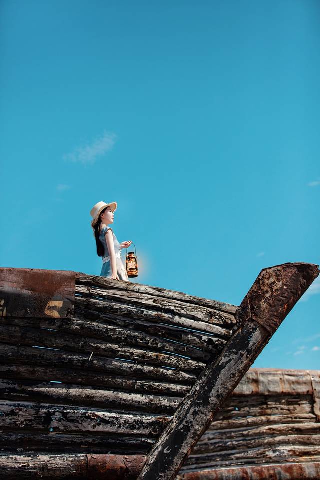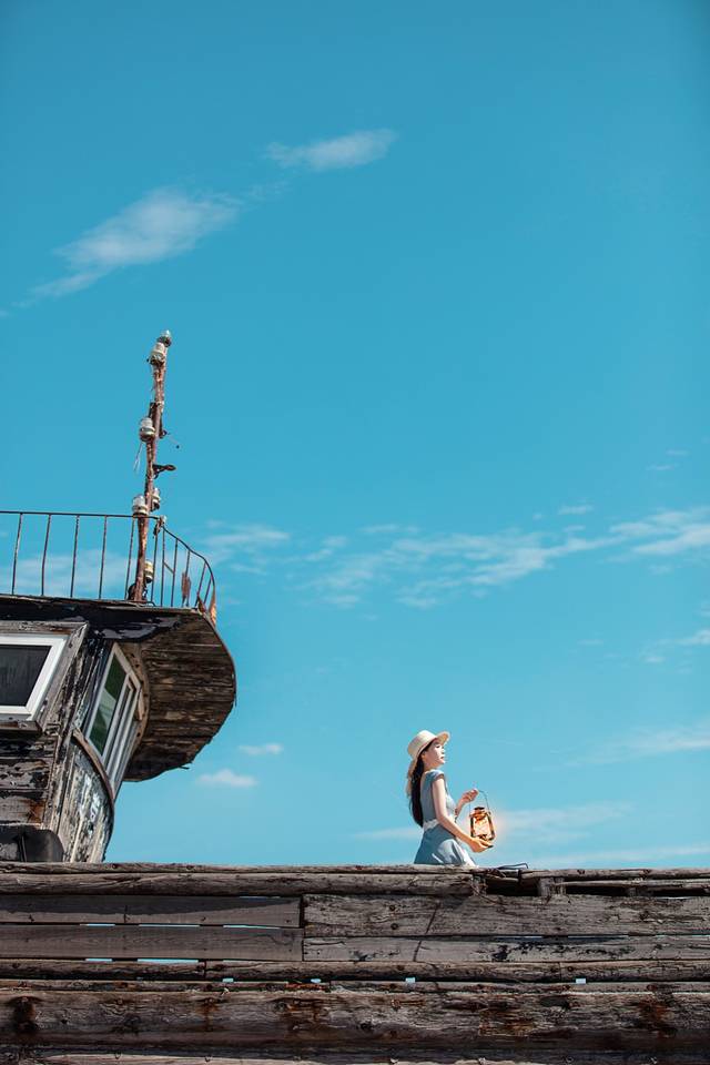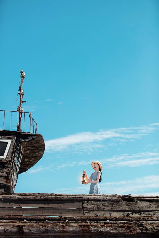 我来的时候正好带了一盏灯,和码头的旧船相当配。虽然爬上去的过程略艰辛,但因为天气好,所以成片的效果还是很赞的。