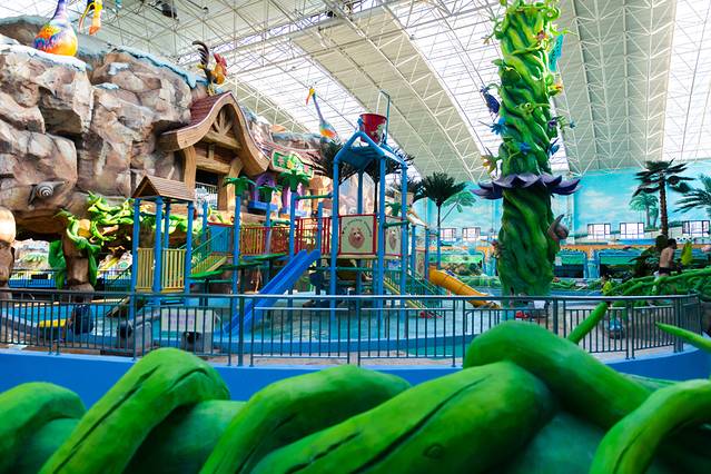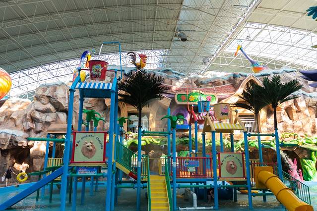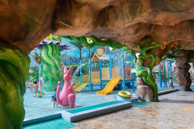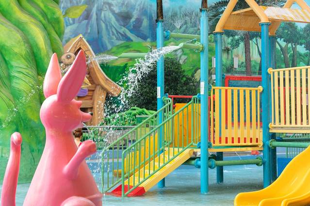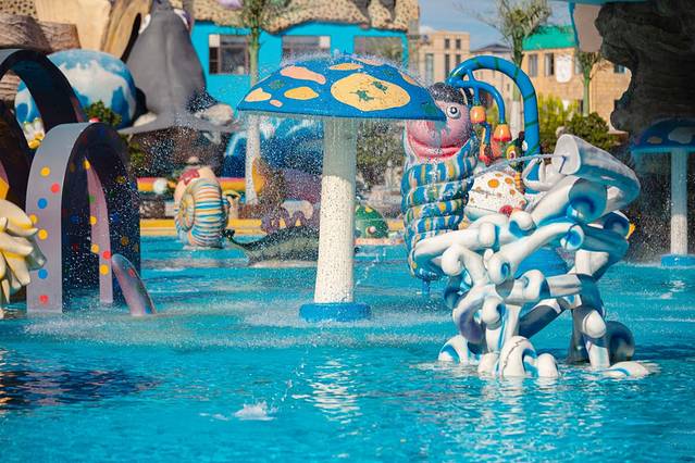 儿童游玩的区域是孩子们的天堂,直线滑梯、亲水滑梯等水上游乐设施,还有可爱的蘑菇,小动物等等,孩子们超级喜欢这里。