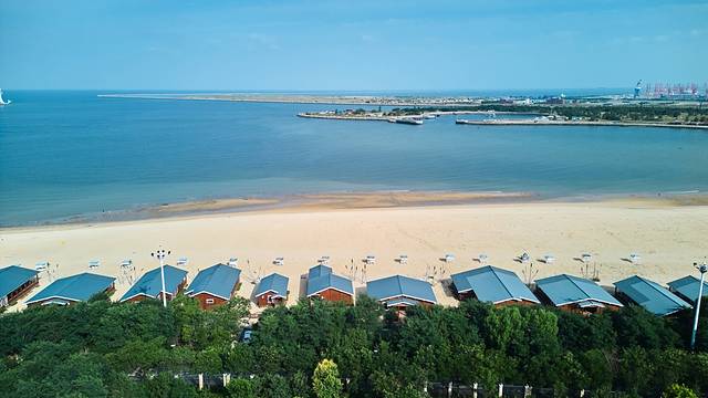 营口市区有不错的观海点,山海广场不仅免费开放,还可以住在附近,鲅鱼湾海景沙滩木屋就是个不错的选择。