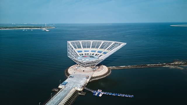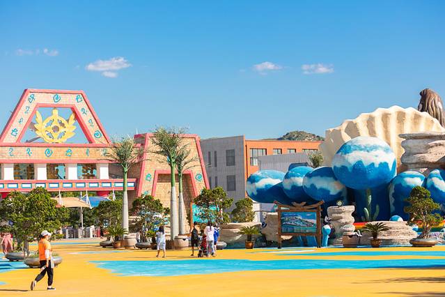 在这里,男女老少不仅可以感受夏季海风的凉爽,放宽心情,还可以体验先进的户外水上娱乐设施,大喇叭滑道、彩虹滑梯等。
