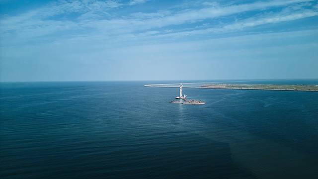 希腊 圣托里尼 是很多女孩心里的梦想,没想到, 辽宁 营口 也有一处小 圣托里尼 ,就在团山国家级海洋公园。这里可以航拍,蓝天,碧海,礁石,摩天轮都能尽收眼底。