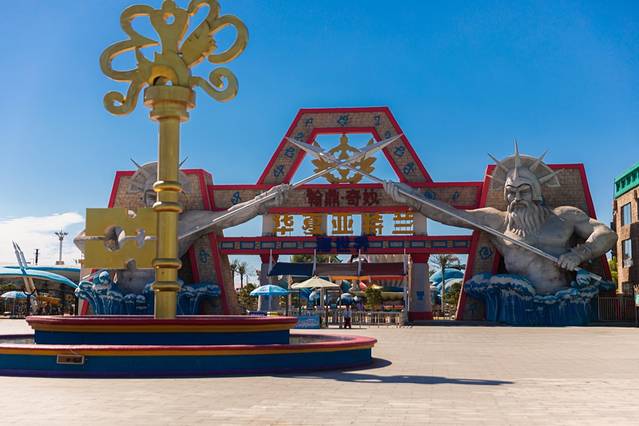 水乐园依海而建,园区以海神波塞冬 长子 亚特兰蒂斯的故事为主题,再现玛雅文明为主要设计理念,通过新奇刺激的大型水上设施,将亚特兰蒂斯时代波塞冬家族戏水游乐的场景再现。