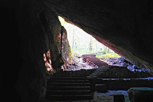 出了风洞,再绕过一道石廊,就是灵洞了。相传先前有个姓葛的仙人,曾在此降妖,故此洞又称葛仙洞了。洞内有一口古井,叫圣水井。