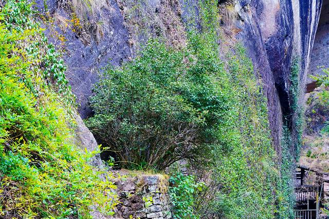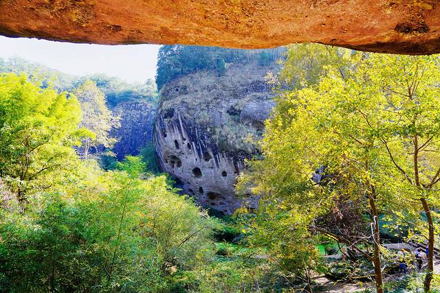 水帘洞又名唐曜洞天,位于瑞泉岩,高度和宽度均超百米。因为上凸下凹,所以形成岩穴。之前看到过网上的图片,丰水季的时候洞前有清泉从100多米高的岩顶飞泻而下,随风飘洒,恍若珠帘,也正因此才被称为水帘洞。
