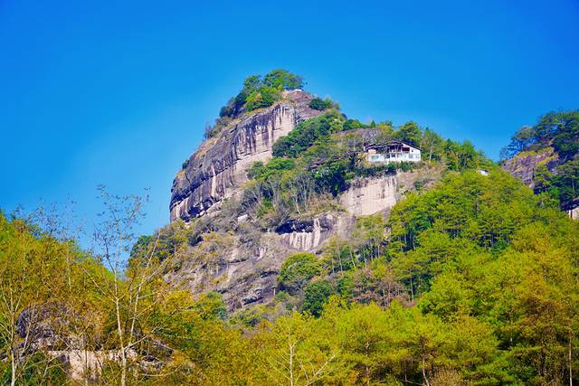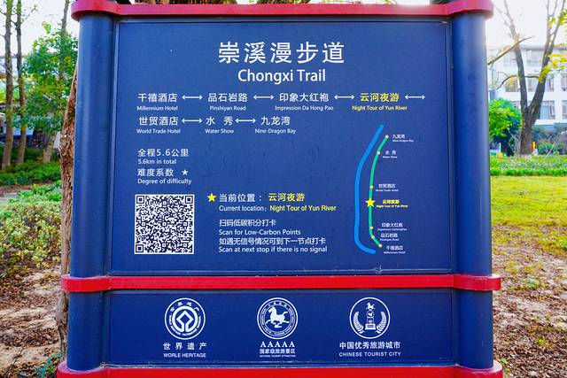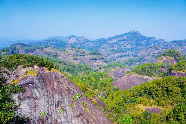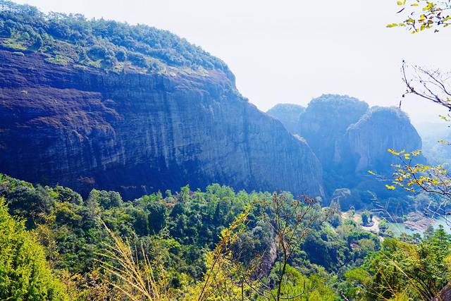 穿过一小片树林后柳暗花明,眼前豁然开朗,底下便是武夷山主景区三大慢游路线之一的岩骨花香慢游道。