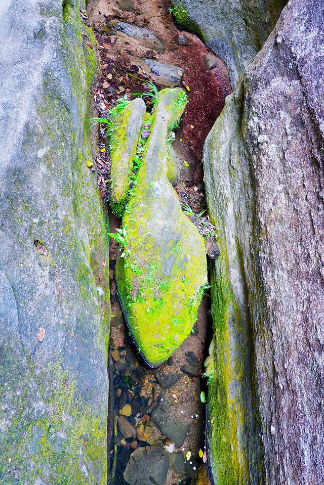 “山重水复疑无路,柳暗花明又一村”,眼看前面两块巨石挡道已无路可走,没想到穿过底下的小洞,那一头竟是另外一片天地。