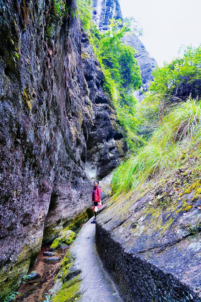 ★★★绿野仙踪慢游道:玉女峰检票口——下虎啸——揽石峰——一线天。路上有武夷山独特的丹霞地貌自然景观,游人既能品味天成禅院佛教文化的禅意悠远,又能欣赏武夷山摩崖石刻文化。天成禅院目前仅剩下一面石壁供游人参观。一线天景观集中于一条大致东西走向的峡谷内,其中景色以洞天奇观而闻名遐迩。