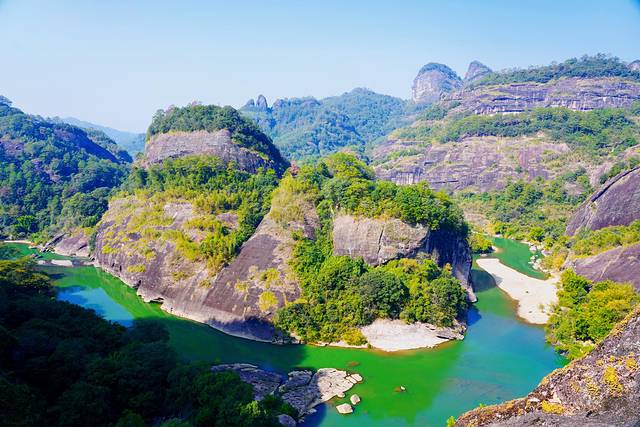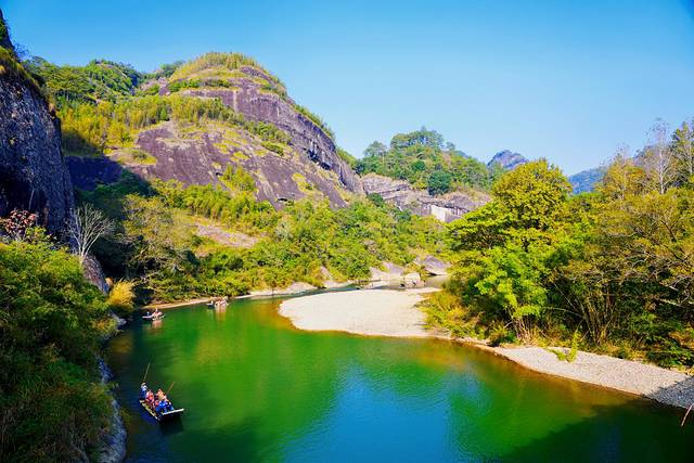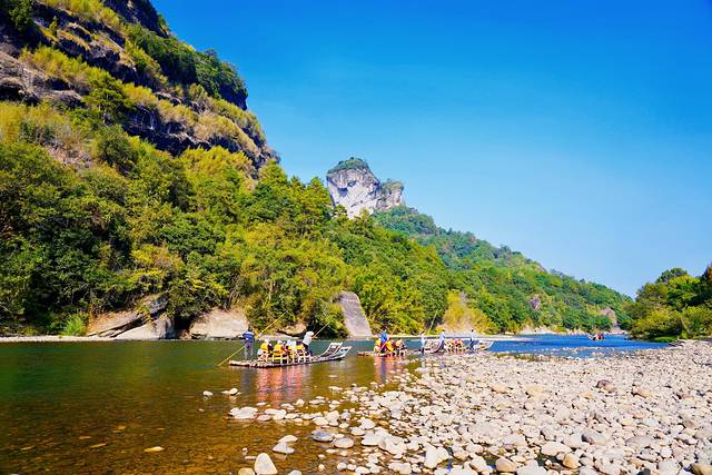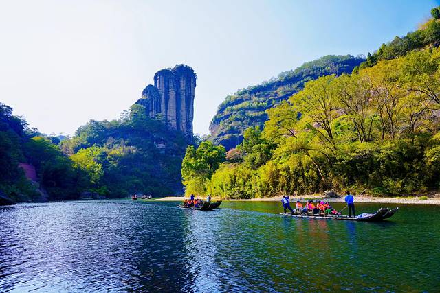 景区打卡+竹筏漂流是武夷山的经典玩法,武夷山核心部分由天游峰——桃源洞、大红袍、水帘洞、虎啸岩、一线天、玉女峰、武夷宫七个小景区组成,九曲溪漂流则是来到武夷山必体验的项目。
