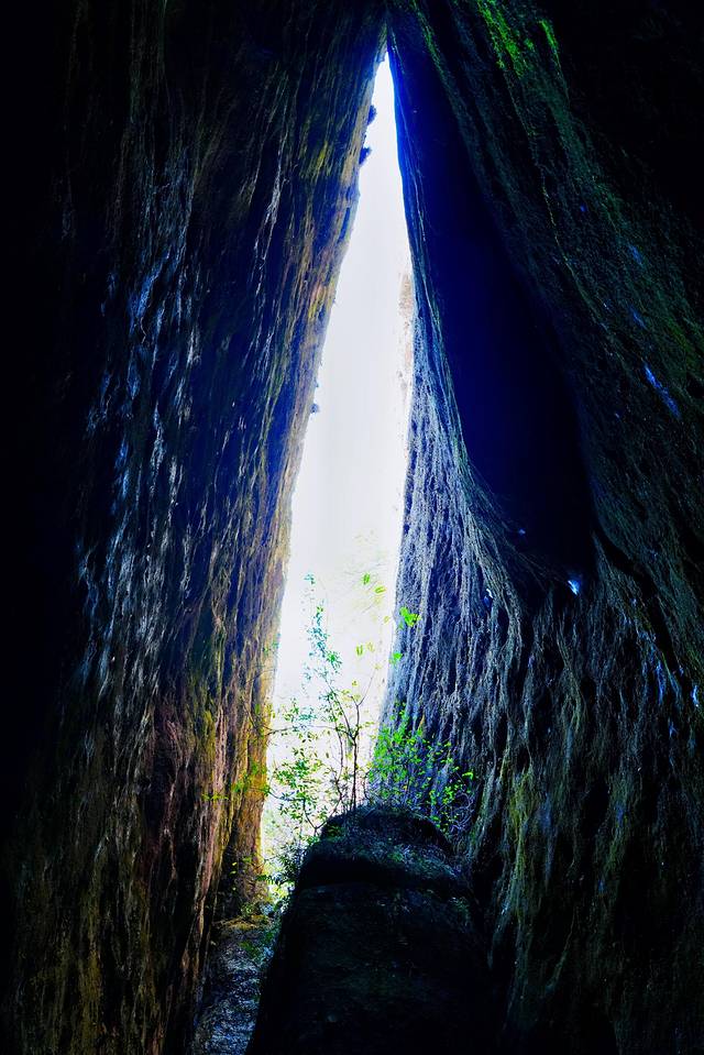 穿过透天关就可以沿正道下山了,如果真是这样,那么你就错过了桃源内一个更隐秘的世界。左手边有一个不起眼的石洞,洞内仅可容纳一人侧身通过。