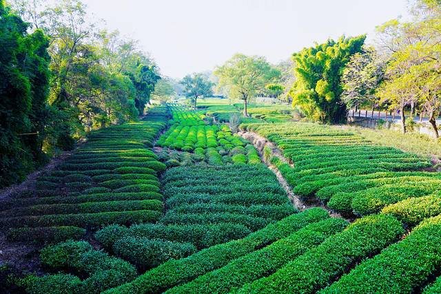 拾级而上,一排排茶树也呈阶梯状错落有致地分布在山谷里。
