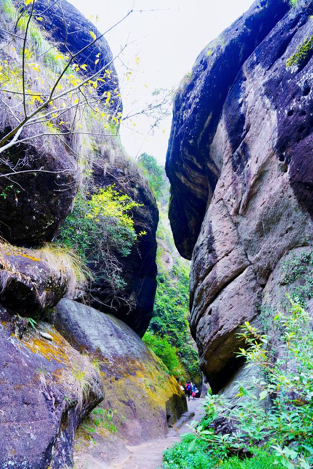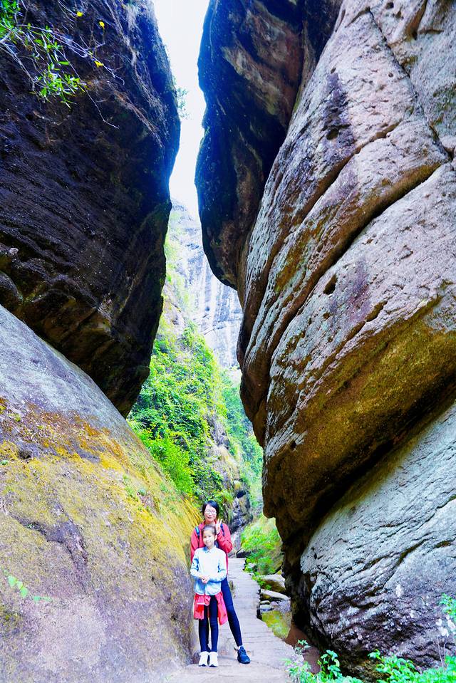 虎啸岩走马观花至少需要一个小时。由于今天体能消耗巨大,所以原本想体验的绿野仙踪慢步道临时决定放弃,从虎啸岩出来直接乘车前往一线天。一线天又名灵岩,位于武夷群峰的西南端,是武夷最奇的岩洞,素有“鬼斧神工之奇”的称号。