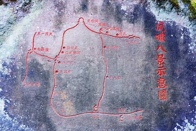 “虎啸”之声,来自岩上的一个巨洞,山风穿过洞口,便发出怒吼,声传空谷,震撼群山。虎啸岩主要景点有天成禅院和虎啸八景——白莲渡、集云关、坡仙带、普门兜、法雨悬河、语儿泉、不浪舟和宾曦洞。
