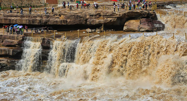 黄河壶口瀑布地处山西与陕西交界处,拥有得天独厚的地理位置,它黄河为界,南北分割,西侧为陕西宜川县境内,东侧则为山西吉县,这里所描述的黄河壶口瀑布属于山西境内,坐落在山西临汾市吉县城西,其壮观程度可以与贵州的黄果树瀑布以及广西的德天大瀑布相媲美,尤其是每年的雨季来临,这里水量充沛,瀑布惊涛怒吼,山鸣谷应,滔滔黄河水此时被两岸山谷挟持,洪流在狭窄的石谷中骤然收束,宛如巨壶沸腾,波浪翻滚,声音震耳欲聋,如雷鸣般闻声数里,气势恢宏。