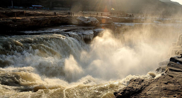 个人感觉,黄河壶口瀑布压轴景点众多,尤其是神奇的壶口八景,随着水量的变化与季节的更替,不断呈现出水底冒烟与彩虹飞渡,以及晴空洒雨的奇观,这里山飞海立,旱地行船,景色美不胜收,即使冬季来临,冰天雪地,黄河壶口瀑布依然能够形成冰封倒挂与十里龙槽的奇观,也依然能够感受到如狮吼般与惊雷般的声音,尤其是冰瀑的美景不可复制,令人惊叹不已。可曾记得的唐代大诗人李白在《将进酒》中,有过这样的描述:“君不见,黄河之水天上来,奔流到海不复回”,倘若用这段名句来形容壶口瀑布的气势,也许最贴切不过了。当您置身其中,站在黄河岸边,眺望着壶口瀑布所卷起的层层浪沙,倾听着黄河咆哮的声音,这种不同凡响的视觉与听觉的冲击,或许此时也才能真正感受到,人类在大自然面前是如此地渺小。