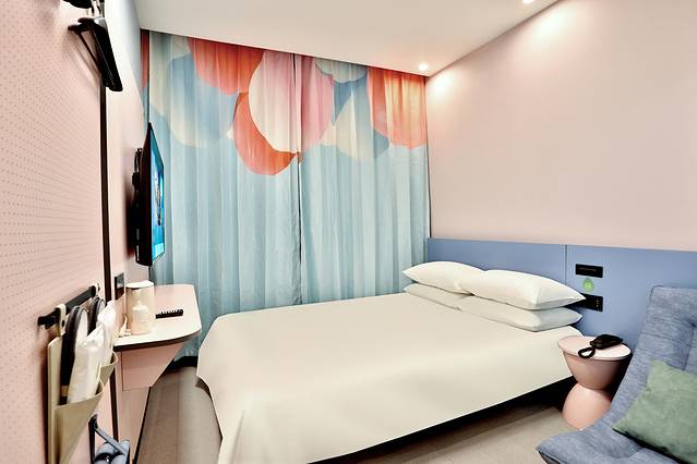 这是海友酒店(杭州西湖湖滨银泰步行街店)的缤纷糖果高级大床房,面积虽然不大,但是功能齐全,东西都是一次性的,比较卫生,这也是最新的海友版本啦。