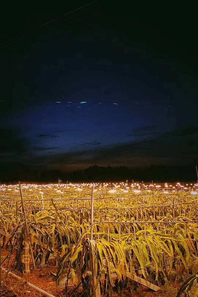 7,8、日落我们是在民宿前面的海边看的。夜晚的火龙果园全部都亮起了灯,如果有无人机拍摄,肯定可以拍出大片,很壮观,一片片的。