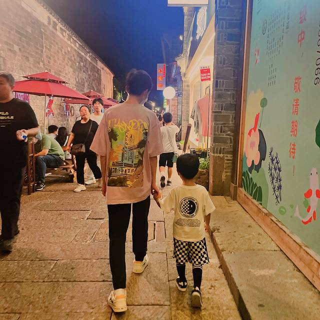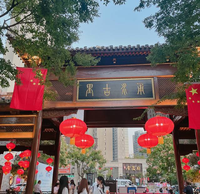 比鼓楼大很多也是逛吃。停车场很大很方便。傍晚阳光散去夜晚的温度适合逛老街。