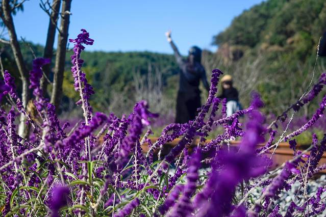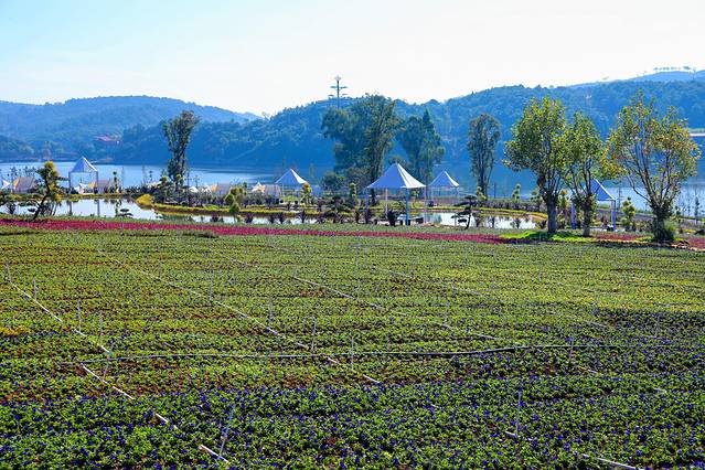 彩色花田:位于湖对面,这是一个全新的景点,国庆节才对外开放的。离景区有点远,没有等到接送的观光车,走路过去十分钟左右。花海很漂亮,不过还没完全长起来,有些地方还看得到泥土地。花田边上有一个帐篷营地要收费,之前来玩没发现,应该也是新开的。
