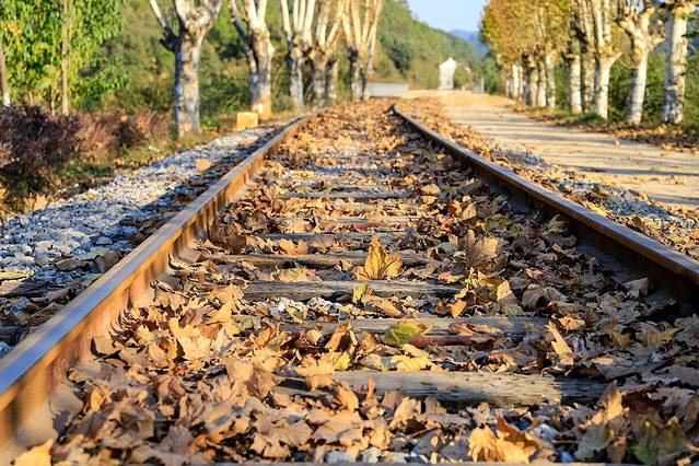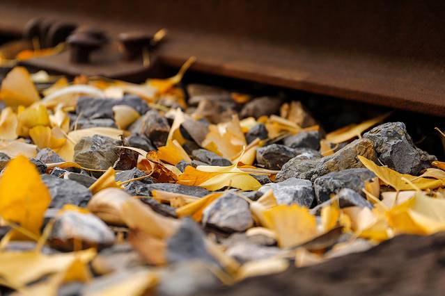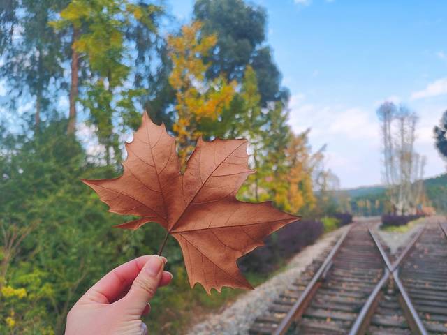 莲花岛火车沿线:银杏+梧桐,秋天的基调便已经定下来了。一条轨道,一列火车,从树林中间穿过,微风轻轻扬起,真的美到想哭。