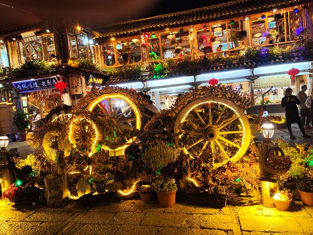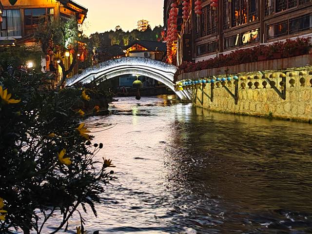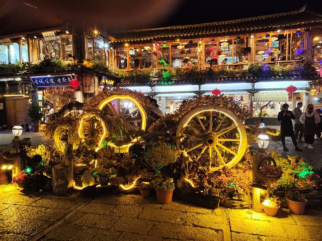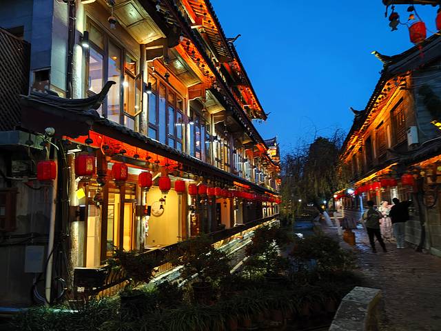 这时的古城是一天中最热闹的时候,四方街的繁华,酒吧街的歌声,振兴巷的灯笼,还有到处旅拍的小姑娘无不阐述着这座艳遇之都随处都有的浪漫。如果云雾藏起了天上的星,那就让地上的灯火代替,如果登上狮子山,夜里的古城也许会变成爱乐之城。