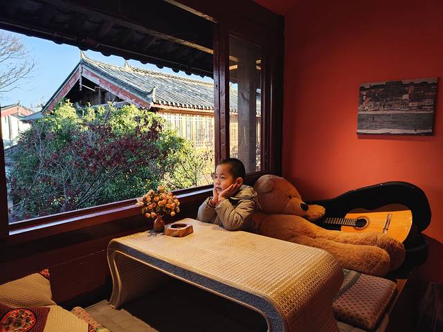 早晨的丽江古镇人不多也颇为安静,总觉得这才是古镇该有的样子,想一想她华灯初上的样子,在宁静与繁华间相互扭转,千年古镇,一半人间烟火,一半岁月故事。卖手鼓的老板教孩子打手鼓,40块包会;烤榴莲的长胡子爷爷说他是青城山入世修行的道士,还给我看了自己手抄的道经,说这是师傅留下的作业。一盏茶,一本书,坐在官在坊二楼的小天台上就可以呆一整天,看着脚下潺潺溪流和匆匆旅客,听着屋顶叮叮当当的风铃声,孩子突然说:“爸爸快看,旁边的叶子在跳舞”。我不禁想起店门口的一句话。我已经看到南风吹动树叶,不知道老板等的故人有没有归来。也许,这一切才是古镇最好的打开方式吧。