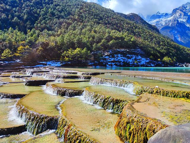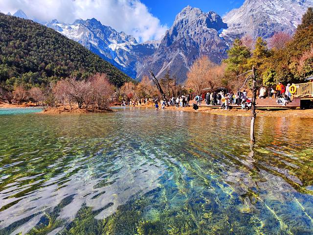 白沙古镇坐落于雪山脚下,多少旅人等在这里,虔诚仰望着云开,只为一睹一刹那的日照金山。蓝天、湖水、远山,看到什么画卷就哼什么歌,我虽然没有在日照金山的时候来到这里,但这里的日光不会辜负任何旅人。