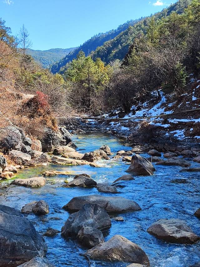 比起玉龙雪山,更让人心动的是脚下那片蓝月谷,也许是天上的一抹蔚蓝,不经意摔落苍穹之下,便挑中彩云之南,绘成了一副山水画。河边的马儿注视着我,似在追问,你是哪里来的客人,我抬头遥望玉龙雪山在云雾里翻滚,他似在回答,除却天地,一切皆是过客。