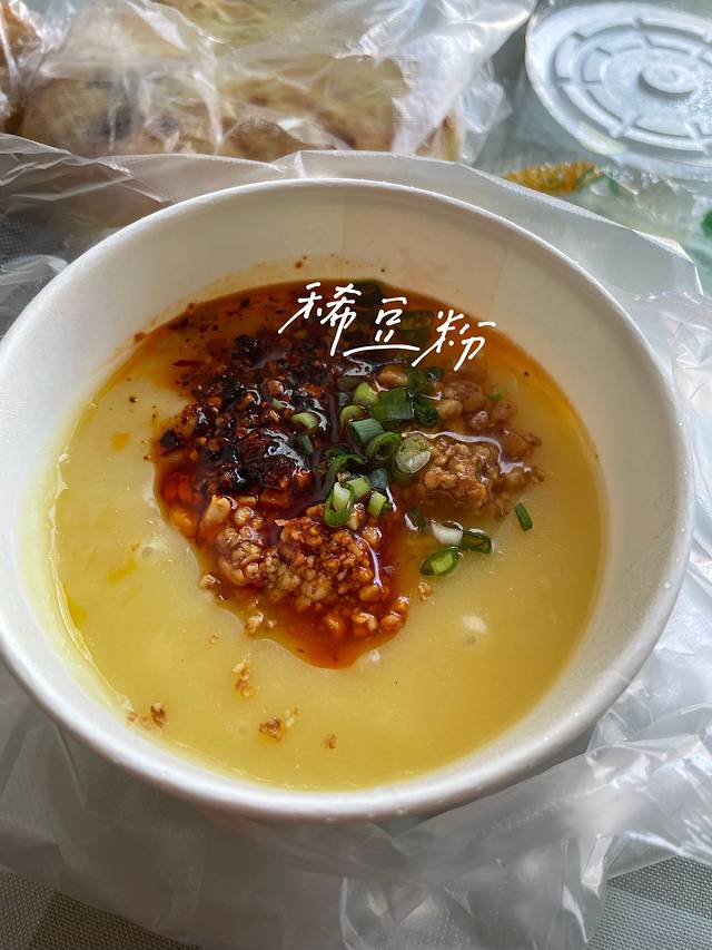 稀豆粉是豌豆粉做的,配个油条沾着吃,巴适。