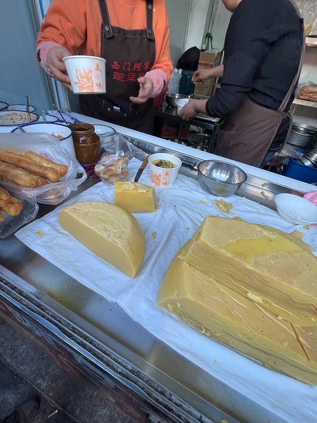 活力充沛的一天,从菜市场早餐开始。某书上推荐的北门网红小吃,九嬢稀豆粉是在农贸市场类,买水果的旁边,我们是看到很多人从门口打包出来才顺着找到的。其它的都在农贸市场外面的路边,有铺面的地方。