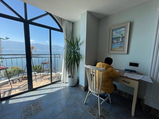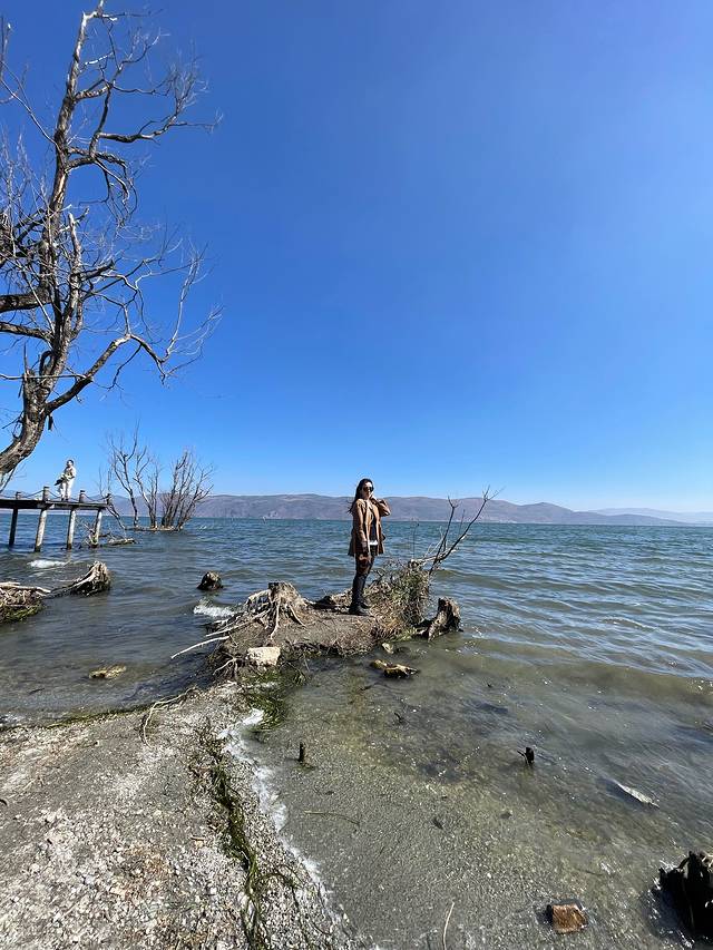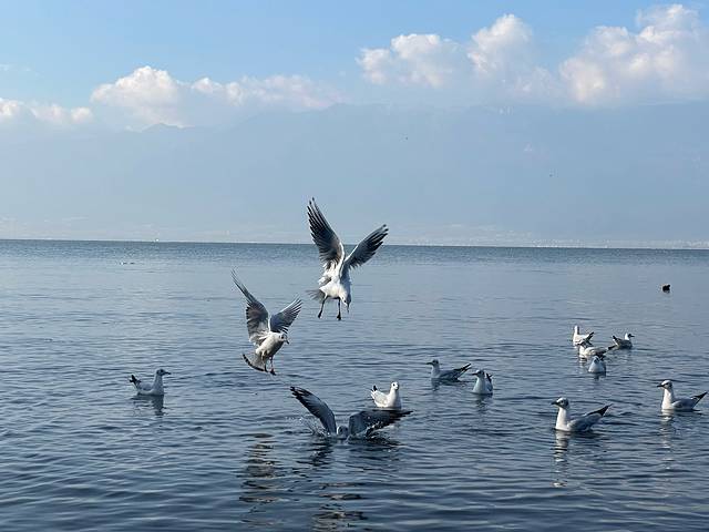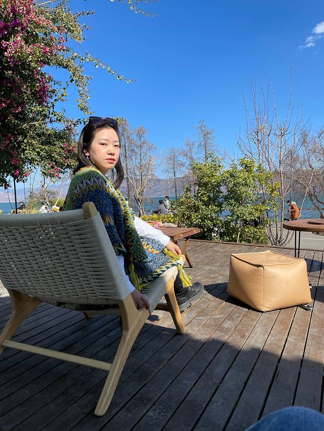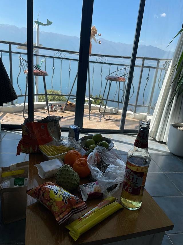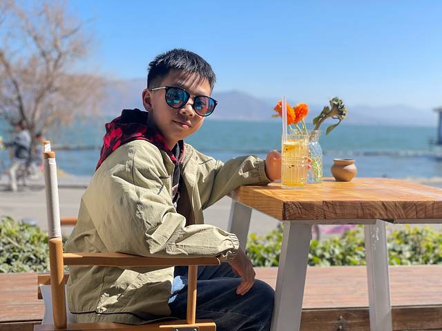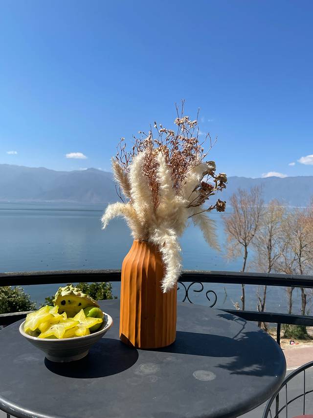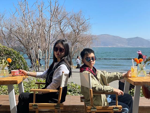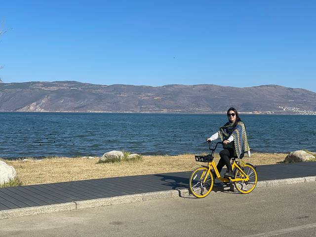 我们只骑到了磻溪村,不想让自己太累没在咖啡馆待了个小时,算算时间回去也要差不多5点了。洱海边的风确实大,白天有太阳的地方可以穿裙子,阴着的地方必须外套,下午4点30后,风越来越大,回来的路上明显感受到风的阻力,孩子爸的体力看来是耗尽了,让我租了一个共享单车自己去。