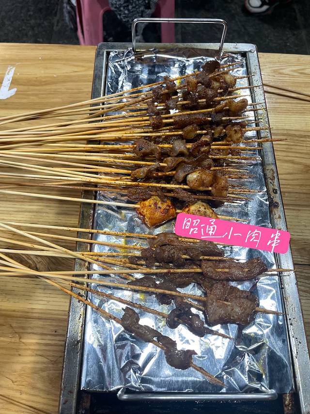 我在给儿子买烤乳扇,老公已经在隔壁烤考起了肉串,牛肉串10元4串,比我们那边便宜,先买了4串,结果味道太好了,直接又买了8串。第二晚去东门有名的昭通小肉串吃了后,觉得还是这个好吃,绕过来有吃了一回.....