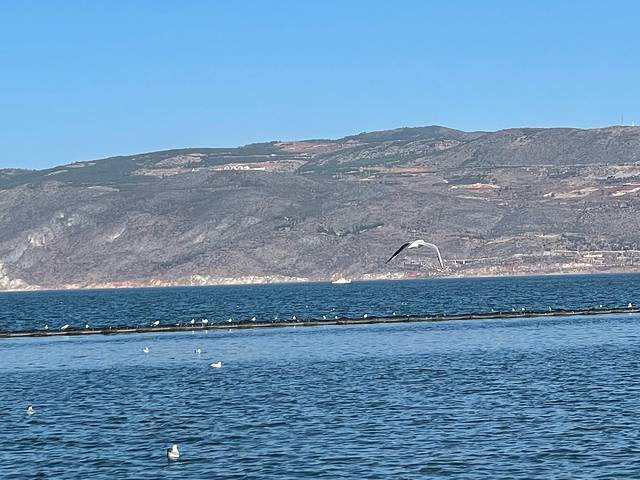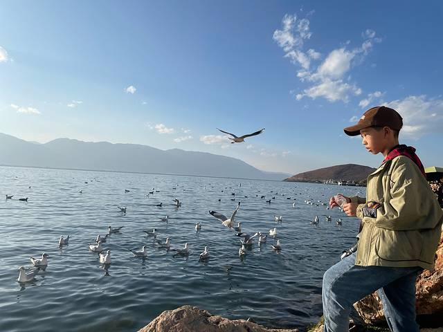 我们住的地方在挖色码头与小普陀的中间,左手边🈶很多的海鸥,傍晚我跟儿子就去喂海鸥了,不过太阳也是真的晒!