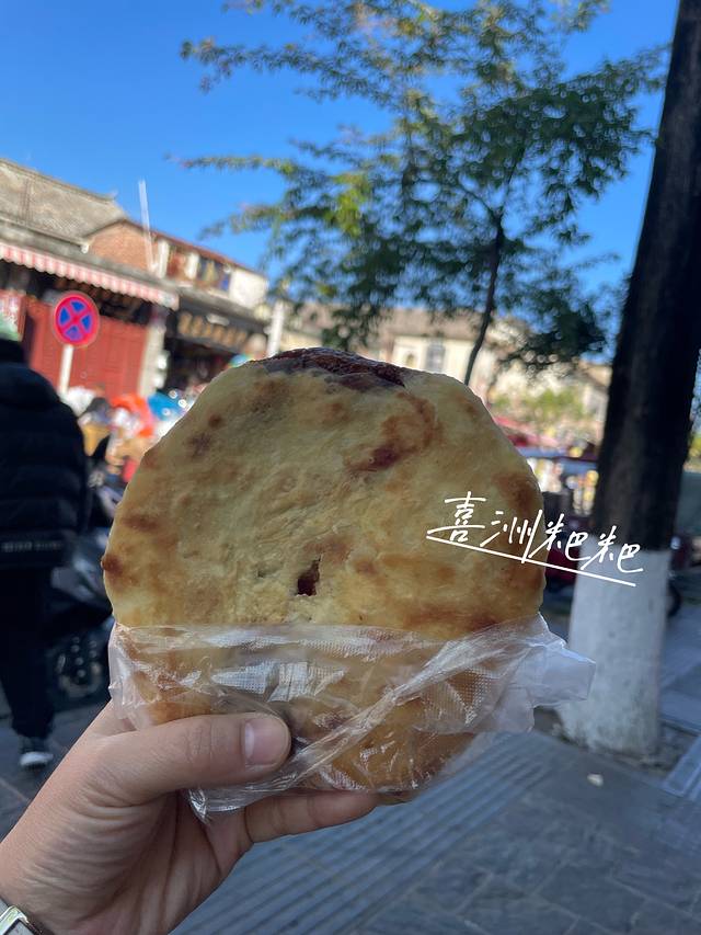 没有找到推荐的杨记破酥粑粑,菜市场门口买的,挺好吃的,不像成都的锅盔,面皮是酥脆的那种,这个面皮是软的,发酵的馒头那样,里面是红糖的,有点玫瑰的味道。也有咸味儿的,我不喜欢咸的,就没有买。后来在喜洲买了一个,感觉没有这儿还吃。