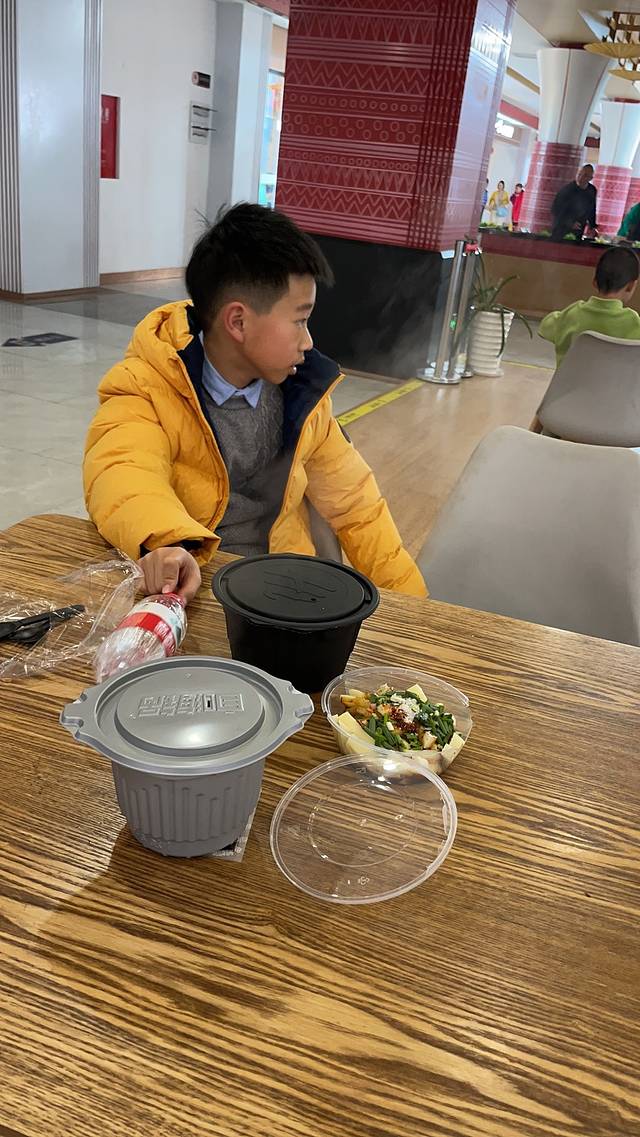 匆匆逛了一圈,我们回北门吃早饭啦,我跟儿子点的小锅米线,孩子爸对米线不感冒,继续昨天的卤面条去了。