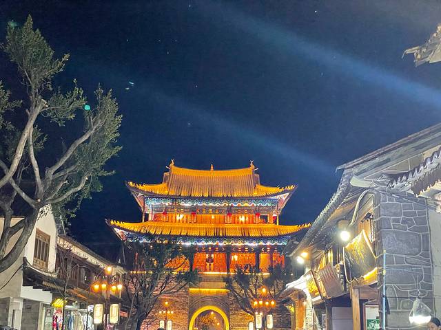 古城背靠苍山,面朝洱海,苍山在西,洱海在东。有1200多年历史,在唐、宋500多年的历史期间是云南的政治、经济、文化的中心。南门和东门是晚上游客的聚集地,我们当晚8点过吃完饭过去,发现简直人多的不行。