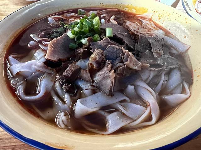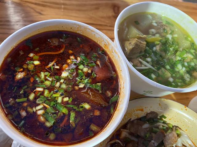 所以也去买了一碗泡椒鸭汤面和一碗酸辣牛肉面((这家的牛肉也很能,鸭汤面很鲜,酸辣牛肉面个人感觉酸味有点重了)其实只需要点一碗泡椒鸭汤面就够了,