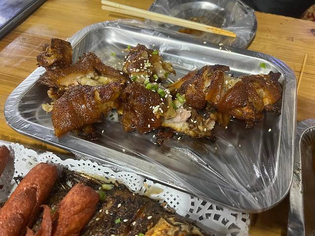 (烤猪蹄,蒜蓉千张,烤五花肉,烤鱼)这里推荐的四个菜,建议必点,真的挺好吃的。