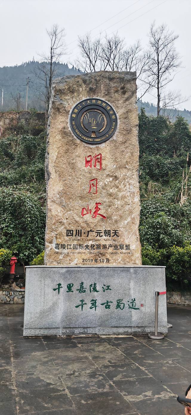 1小时后到达明月峡,游客中心的美女推荐在抖音上买票62元/人是最便宜了,看停车场就知道游客不多。天濛濛的,山上生烟,这次我们看到的是浪漫的明月峡!去时走的木头栈道,因细雨有些滑,走得比较慢,不过可以慢慢领略嘉陵江别有一番的美。回时走的石板路,路是好走了,但正月里的风大到能吹跑3层帽子。