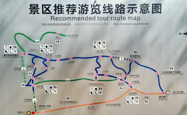 一群人懒懒散散,9点多才退房,听闻女皇蒸凉面是广元的天府名菜之一,酒店附近就有个店能吃到,去尝试了一下,没有拍照,因为我们都觉得很一般。到达剑门关北门停车场已是11点,停车场门口有几个当地人逢车就靠前来说今天索道没开,要从南门进,我们拉你们去南门或者上山,当然是选择不理他们啦。到游客中心一问,第一段索道开了,第二段索道果然没开,咨询了游客中心工作人员,看了好一会儿高大上的景区3D模型,讨论了几种方案,想起外面拉客的人不是说可以拉人上山吗,于是出去找了个人问,说能开车送到第一段索道终点位置,90元。对,你没猜错,我们坐上了他们的车。大概十分钟左右,师傅把我们放下,指了道,又下山接游客去了。自此我们开始了在剑门关的跋涉之路。爬了20分钟左右到达仙女廊观光车站,继续往上爬的途中不是听到来自山顶的“猿啼”,还嘀咕咋这么爱啼叫呢,等我手脚并用历尽辛苦爬到此地,也不禁嚎叫了一两声,那不是“猿啼”,而是战胜困难后的庆祝!