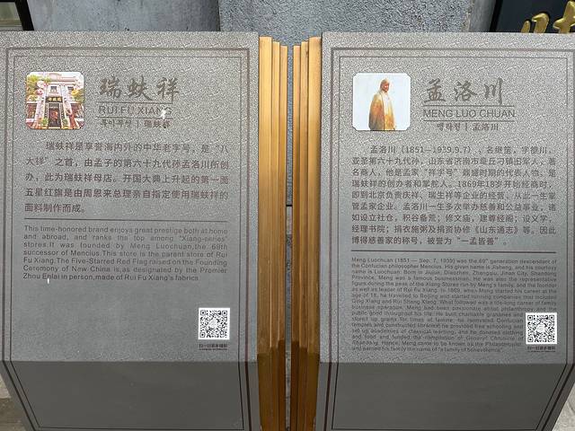 作为中国古商业文化的优秀代表,古商城至今仍保持着古朴的明清原貌和历史本色。经多年抢救性恢复和保护性开发,目前已形成了千佛寺庙群、三益堂印刷展馆、谦祥益、瑞蚨祥、民俗展览馆、英美烟草公司展览馆、今日无税碑、状元府、票号展览馆、杨家大院、大染坊、魁星阁庙群以及这里的特色小吃周村烧饼。淄博艺术博物馆等10多处具有较强的知识性和趣味性的景点。