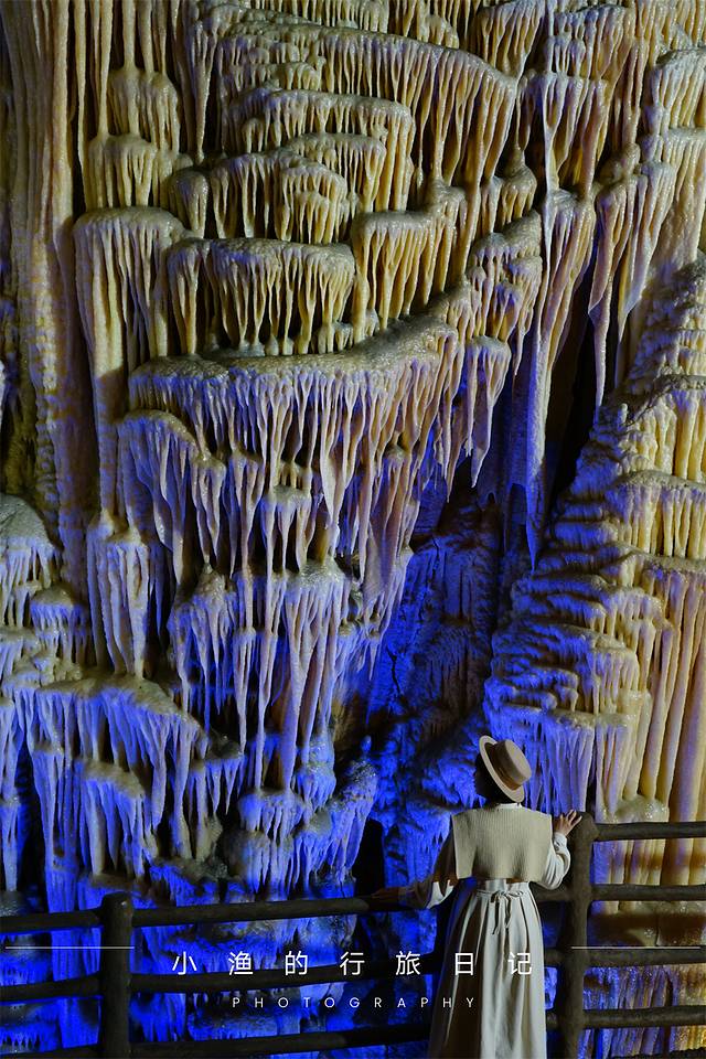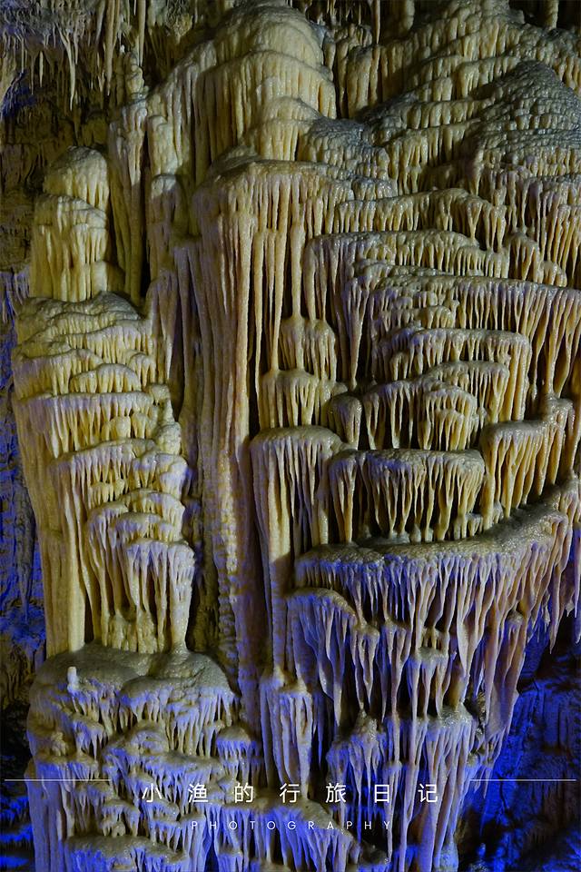 洞内分为上下两层,上层是旱洞,下层是水洞。洞内景观更是千奇百怪,大自然用时间耐心地打造出千姿百态的石笋、石柱,颜色和质地更是如雪如玉,尤其是标志性景观“白玉瀑布”,更是让我们叹为观止。