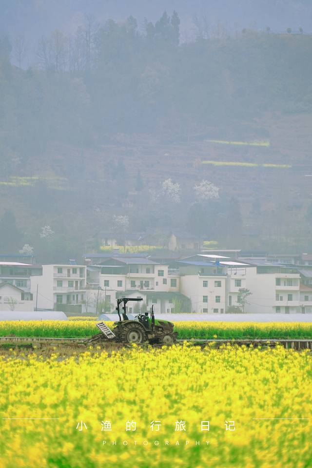 油菜花哪里都有,看花是看花,更是看周围衬景。镇巴多山,拥有数片千亩油菜花海。其中,最美最集中的还要数黎坝镇、渔渡镇和盐场镇。