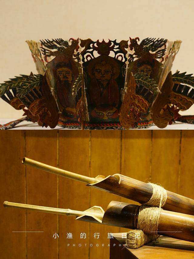 第一站,我们先参观了镇中心的苗族陈列馆,了解镇巴清水苗族的迁移历史以及神秘的苗族文化。下图是苗族陈列馆收藏的两件文物,上面那个是苗族巴代主持祭祀仪式时的头冠,堪称“镇馆之宝”;下面那个是一种苗族古老的乐器芒筒。