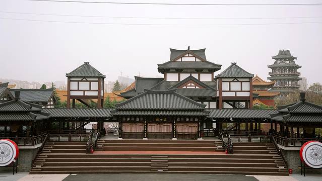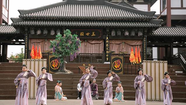 从城门楼俯瞰故里的震撼与恢弘后,我们就可以下来,按顺序依次游览景区了。首先经过的广场就是盖世阁。各种大型的演艺表演都会在这里进行。