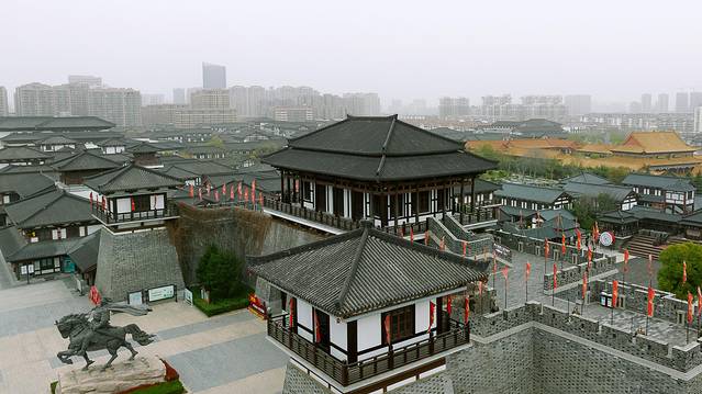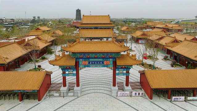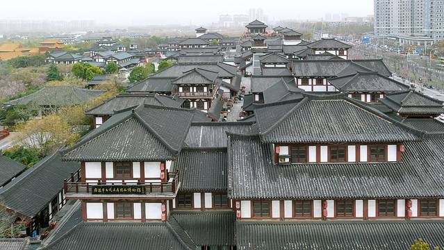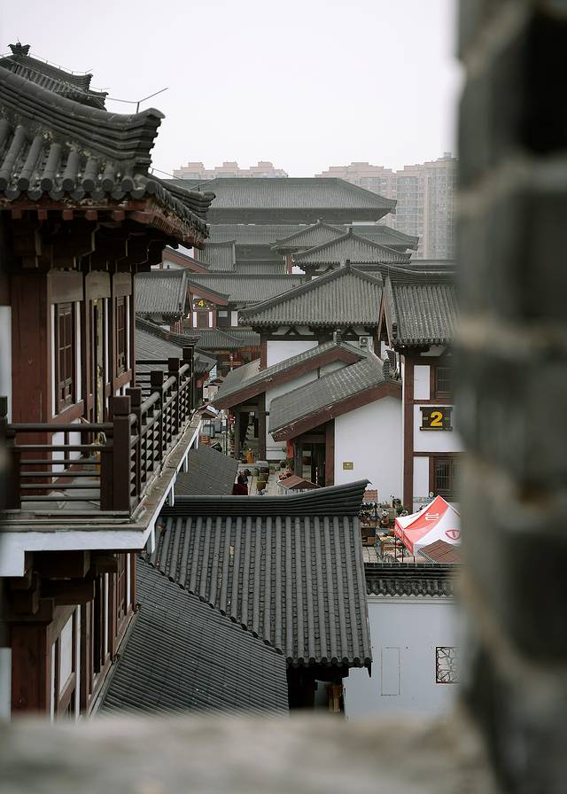 整个项王故里很大,除了核心景区,从景区的出口到停车场,还有经过一条热闹的市集,清一色的仿古建筑与项王故里完美融合,毫无违和感,登高俯瞰,也给古宅故居平添了几分人间烟火气。