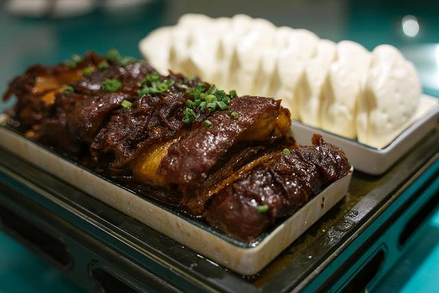 这家店最有特色的菜叫黄狗猪头肉,据说创始人叫黄狗,他做的猪头肉堪称一绝,我们本来想点,只怪太火,没有提前预约点不到,只好退而求其次点了一份红烧五花肉,切片很厚但是却肥而不腻,连皮都丝滑入口,非常香。大快朵颐!减肥什么的?吃完这顿再说吧!