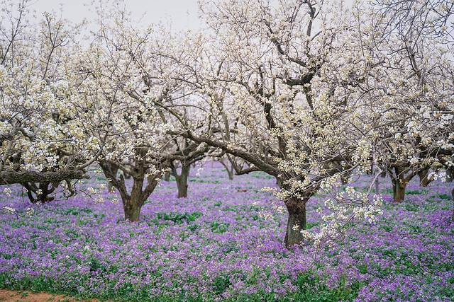 你或许见证过“忽如一夜春风来,千万万树梨花开”的浪漫梨园,你又或许曾穿行二月兰紫色的花海,但你可曾知道,当这片浪漫的紫色与春节的白色相交汇,会碰撞出怎样的浪漫呢?