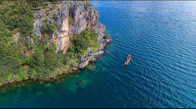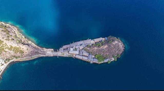 明信片上高产的标志性地,在岛上的观景台可以拍摄到泸沽湖的爱心形状,逕望湖景左右对称过去,这个小岛也有许多客栈,而且还有可以泊船的码头。