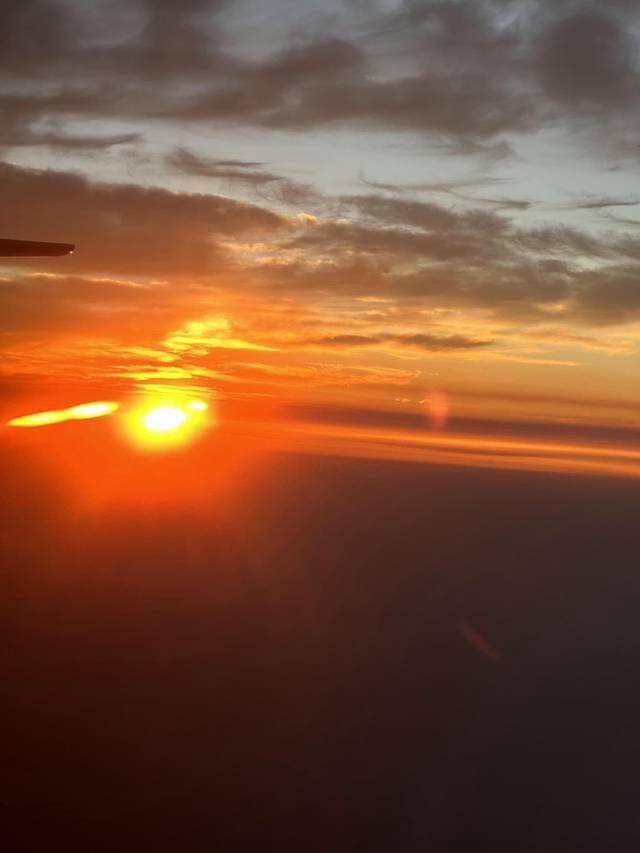 飞机上看到早晨的第一缕光